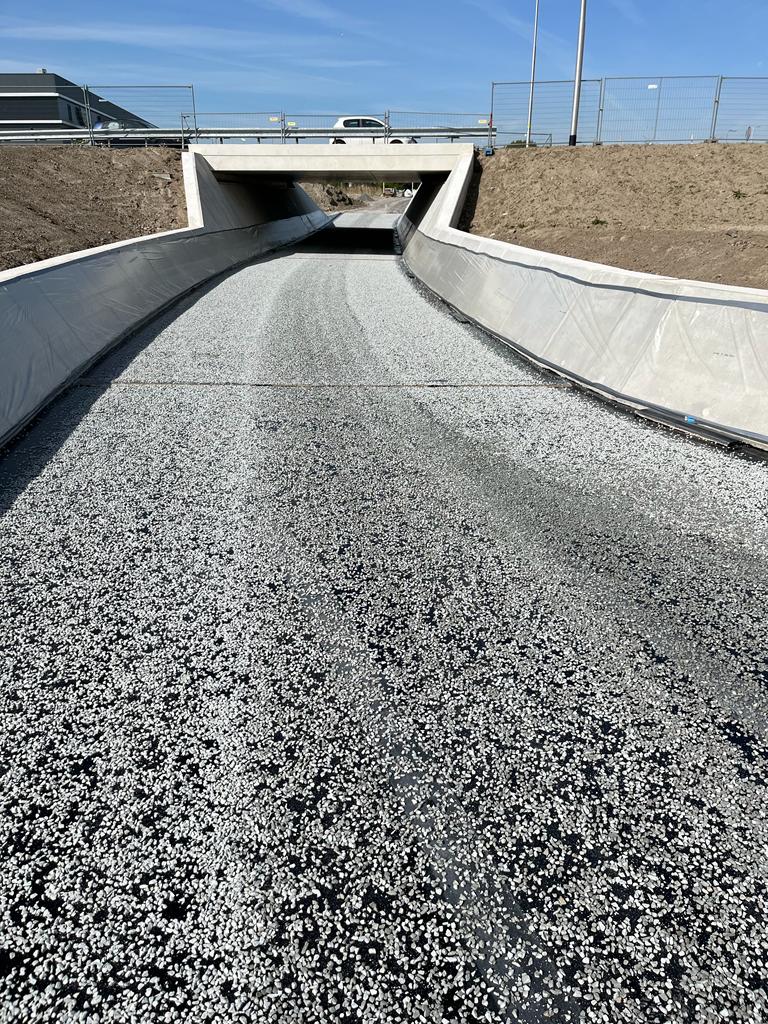 Op 4 mei, vroeg in de ochtend, heeft BituNed in opdracht van KWS een Sealoflex SC membraan aangebracht en afgestrooid op een fietsonderdoorgang bij de Ijsselmondse Knoop te Ridderkerk. In totaal meer dan 1300m2 welke nu een waterdichte afsluiting voor het betonnen oppervlak heeft gekregen alvorens er geasfalteerd is.