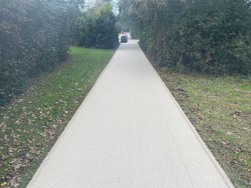 Toepassing van wit asfalt begraafplaats Texel met Sealoflex Color Kleurloos Bindmiddel.